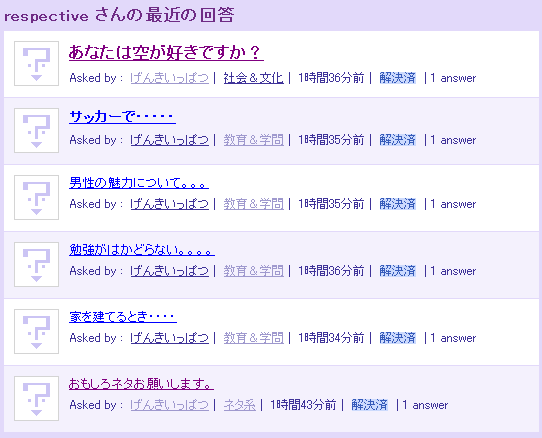 しかも同じ人物が全て回答し、数分後に全てベスト回答をかっさらうという神業。