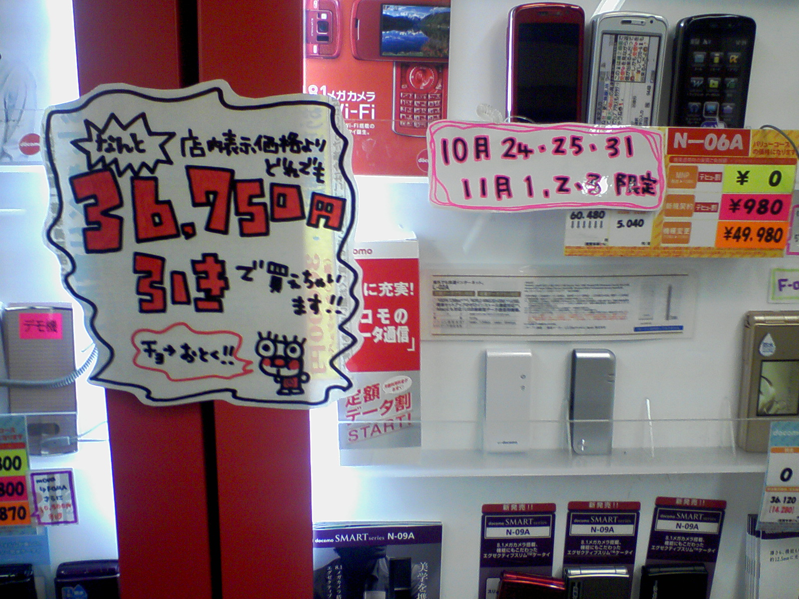800万画素カメラ、Wi-Fi装備したN-06AをMNPなら0円。